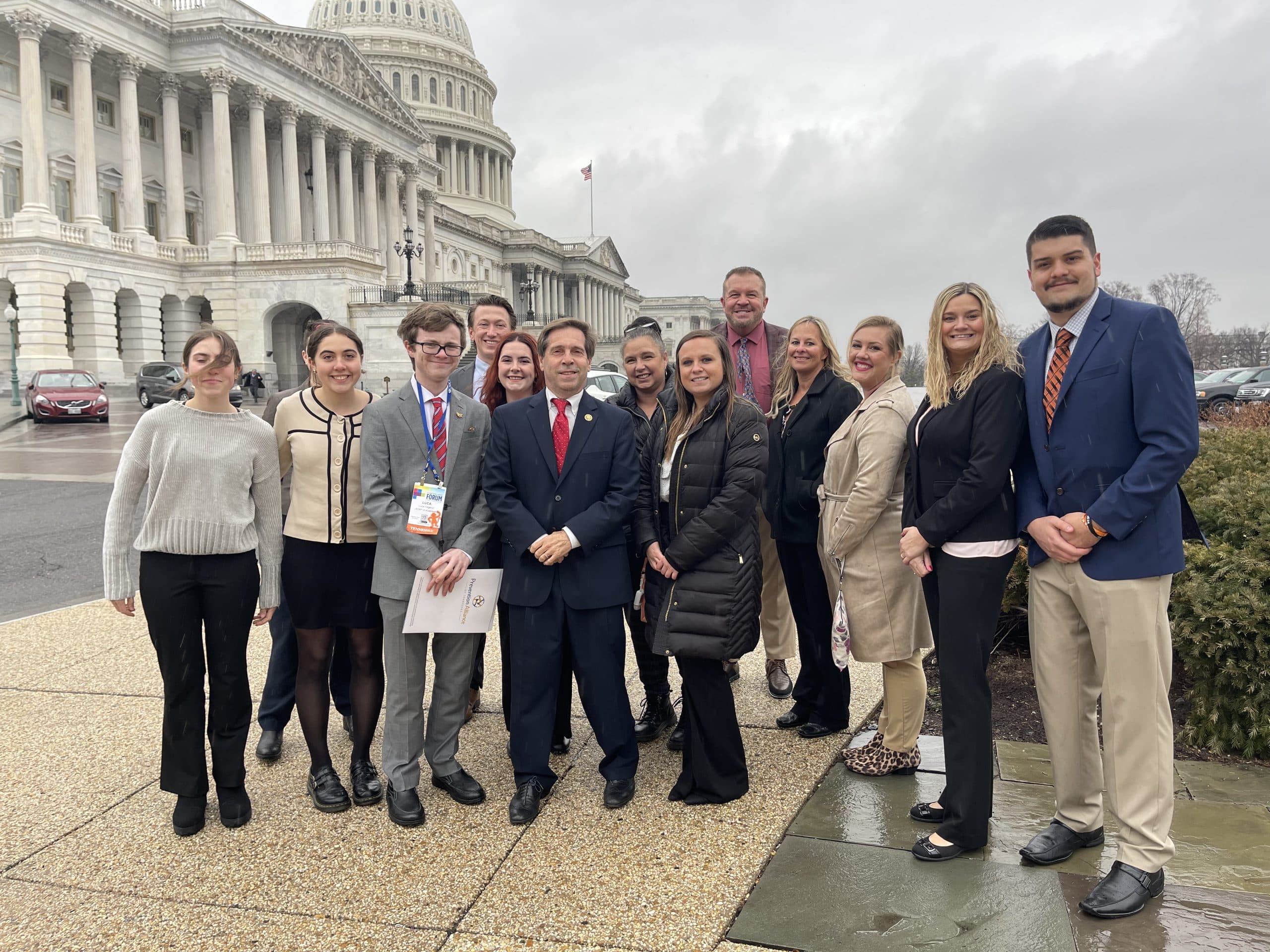 Later, ASAP and the students joined prevention specialists from Monroe, Scott, and Roane County to have a meeting with Rep. Fleischmann. Fleischmann, who was in session at the time of the meeting, ran out of the Capitol to meet with the students during a little bit of downtime. After hearing the students’ presentation and a quick photo, he returned to business.