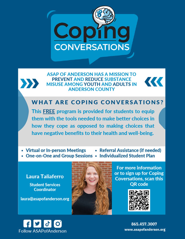 Teens today face more pressure than ever, and without healthy coping skills, many turn to risky behaviors that can harm their mental and physical well-being. Coping Conversations offers a free, four-session program to help students replace harmful habits with personalized, positive strategies for handling life’s challenges.