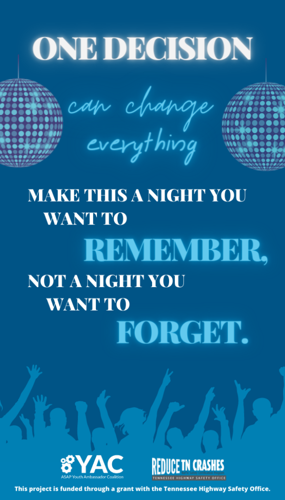 ASAP of Anderson would like to thank the Tennessee Highway Safety Office for providing a grant to support an I AM ONE selfie studio during Anderson County and Clinton Proms. During the months of April-June, typically prom season, 33% of alcohol-related traffic fatalities occur. This selfie studio is to be yet another reminder to make safe, healthy decisions as they celebrate, in hopes to prevent them from being another traffic-related injury or fatality.